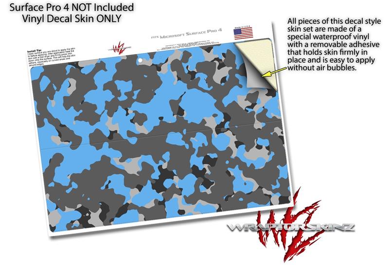 Decal Style Vinyl Skin for Microsoft Surface Pro 4 - WraptorCamo Old School Camouflage Camo Blue Medium - (SURFACE NOT INCLUDED)