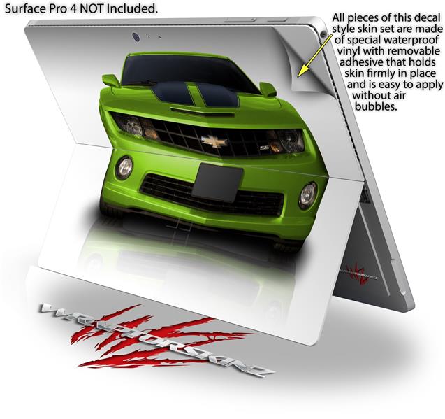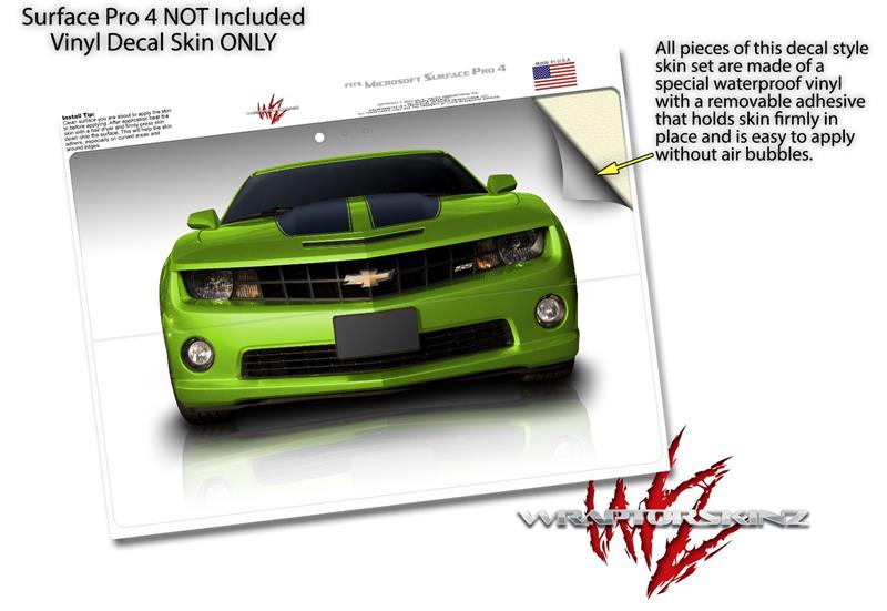 Decal Style Vinyl Skin for Microsoft Surface Pro 4 - 2010 Chevy Camaro Green - Black Stripes - (SURFACE NOT INCLUDED)
