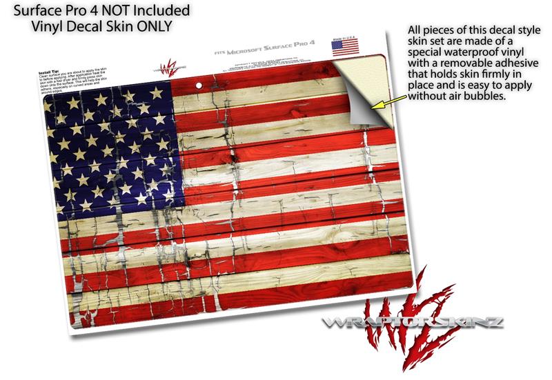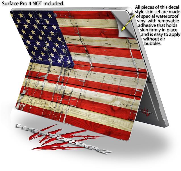 Decal Style Vinyl Skin for Microsoft Surface Pro 4 - Painted Faded and Cracked USA American Flag - (SURFACE NOT INCLUDED)