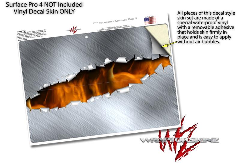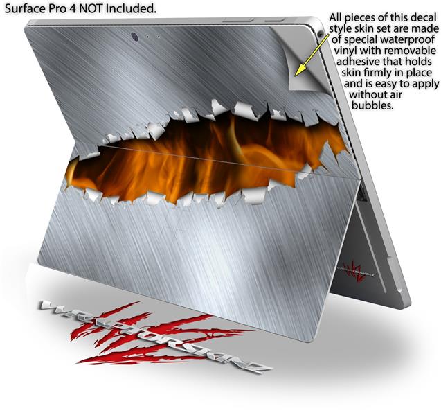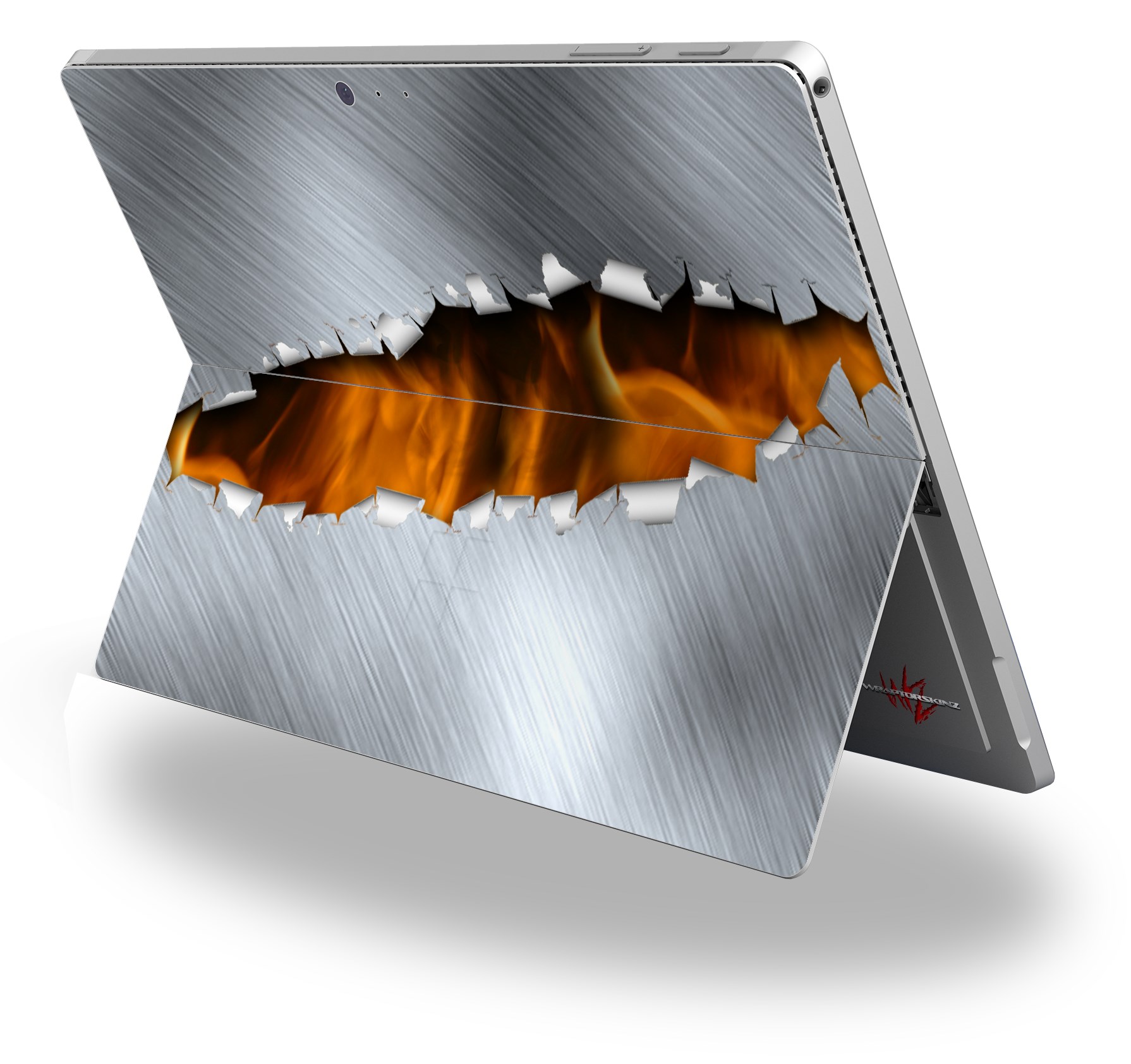 Decal Style Vinyl Skin for Microsoft Surface Pro 4 - Ripped Metal Fire - (SURFACE NOT INCLUDED)
