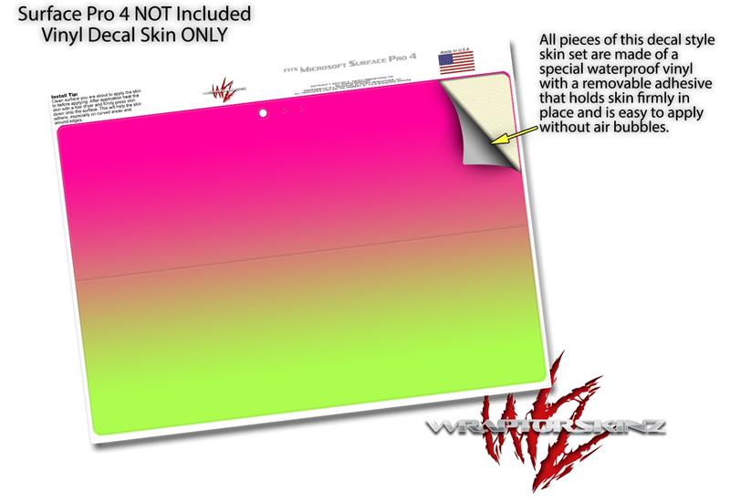 Decal Style Vinyl Skin for Microsoft Surface Pro 4 - Smooth Fades Neon Green Hot Pink - (SURFACE NOT INCLUDED)