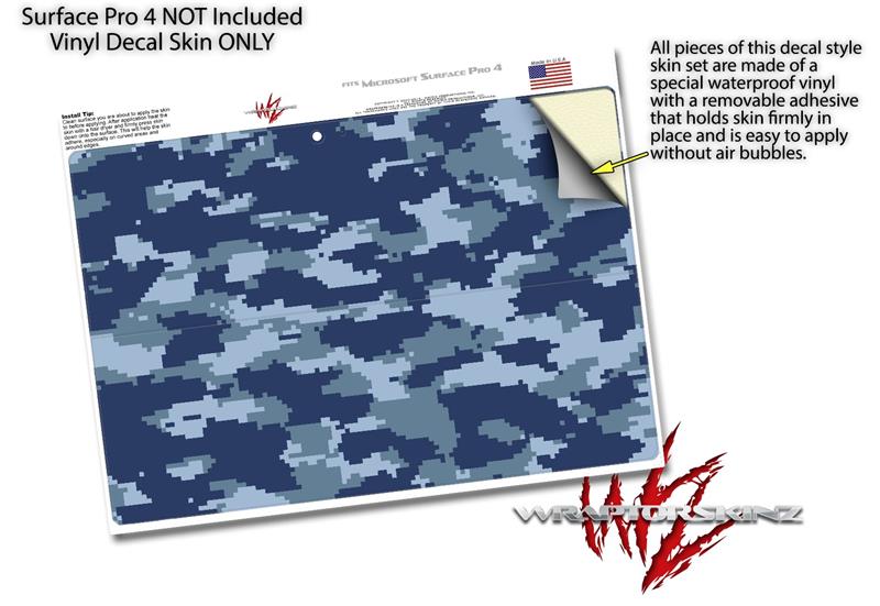 Decal Style Vinyl Skin for Microsoft Surface Pro 4 - WraptorCamo Digital Camo Navy - (SURFACE NOT INCLUDED)