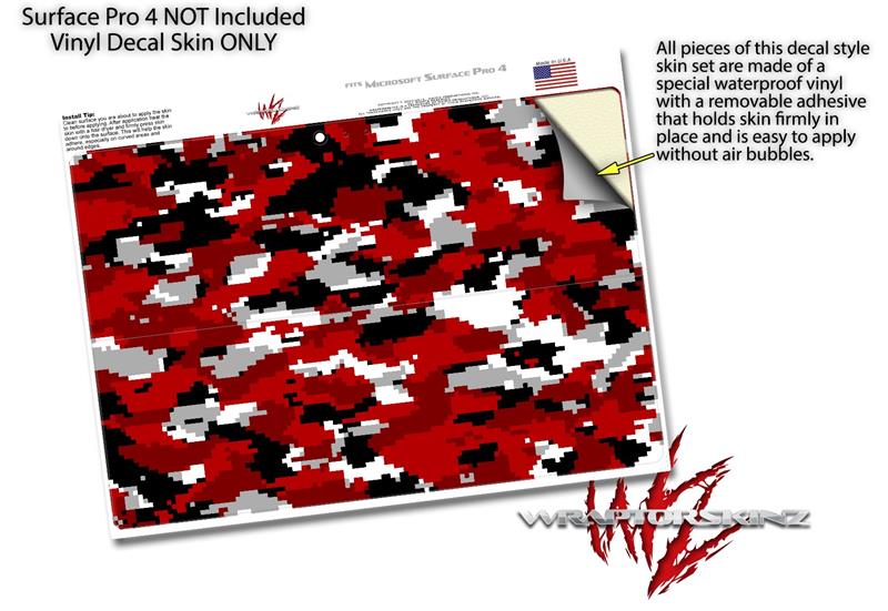 Decal Style Vinyl Skin for Microsoft Surface Pro 4 - WraptorCamo Digital Camo Red - (SURFACE NOT INCLUDED)