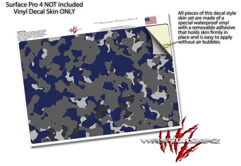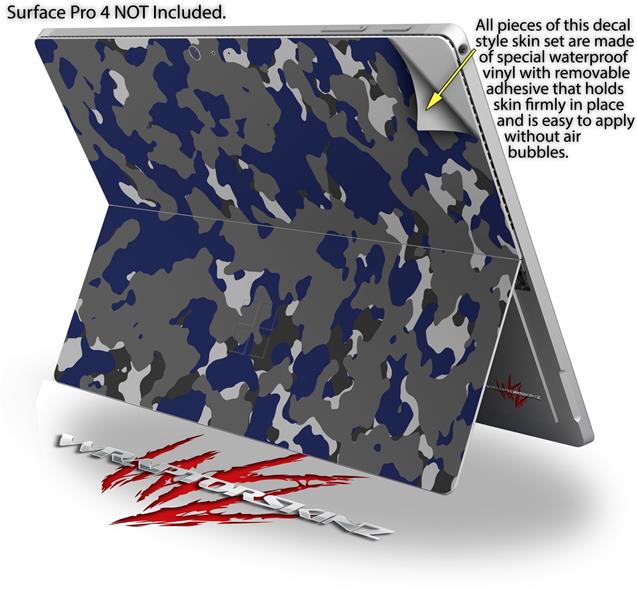 Decal Style Vinyl Skin for Microsoft Surface Pro 4 - WraptorCamo Old School Camouflage Camo Blue Navy - (SURFACE NOT INCLUDED)