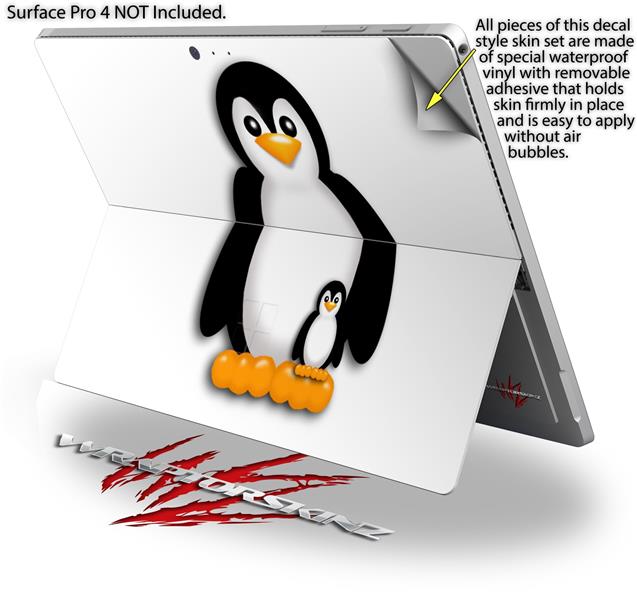 Decal Style Vinyl Skin for Microsoft Surface Pro 4 - Penguins on White - (SURFACE NOT INCLUDED)