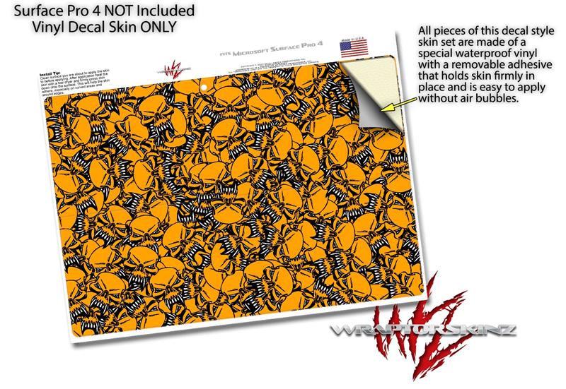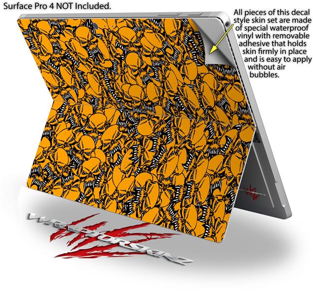 Decal Style Vinyl Skin for Microsoft Surface Pro 4 - Scattered Skulls Orange - (SURFACE NOT INCLUDED)