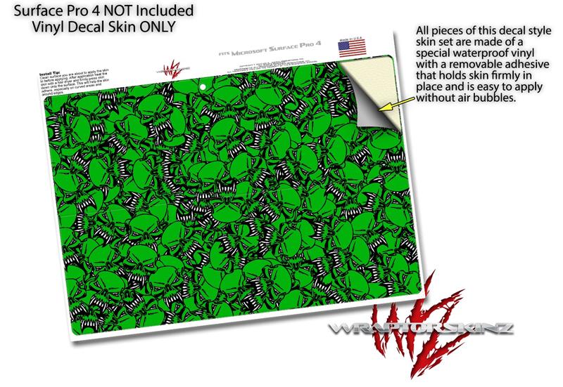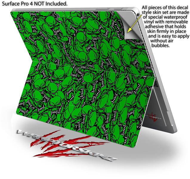 Decal Style Vinyl Skin for Microsoft Surface Pro 4 - Scattered Skulls Green - (SURFACE NOT INCLUDED)