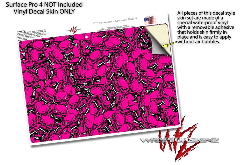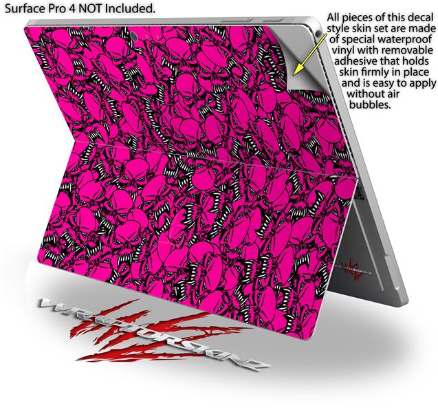 Decal Style Vinyl Skin for Microsoft Surface Pro 4 - Scattered Skulls Hot Pink - (SURFACE NOT INCLUDED)