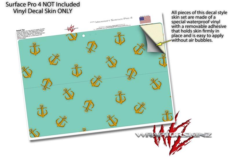 Decal Style Vinyl Skin for Microsoft Surface Pro 4 - Anchors Away Seafoam Green - (SURFACE NOT INCLUDED)