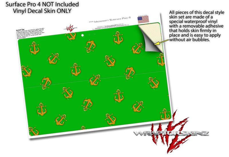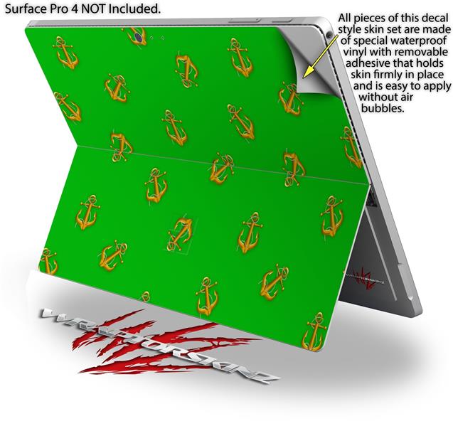 Decal Style Vinyl Skin for Microsoft Surface Pro 4 - Anchors Away Green - (SURFACE NOT INCLUDED)