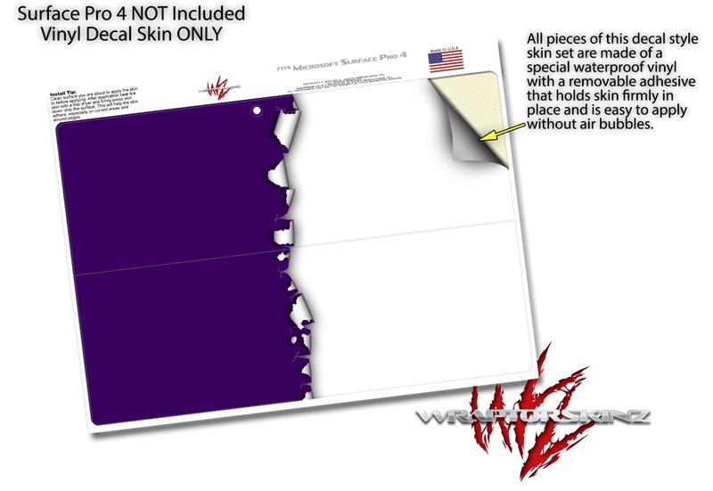 Decal Style Vinyl Skin for Microsoft Surface Pro 4 - Ripped Colors Purple White - (SURFACE NOT INCLUDED)