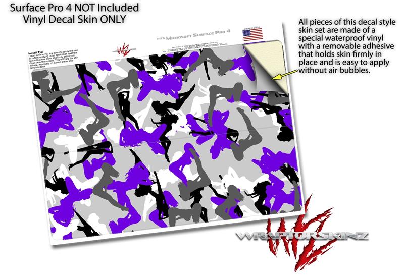 Decal Style Vinyl Skin for Microsoft Surface Pro 4 - Sexy Girl Silhouette Camo Purple - (SURFACE NOT INCLUDED)