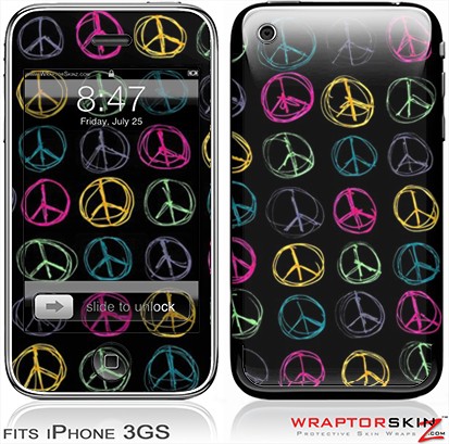 iPhone 3GS Decal Style Skin - Kearas Peace Signs on Black