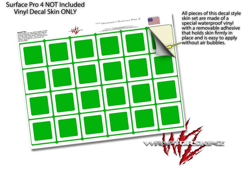 Decal Style Vinyl Skin for Microsoft Surface Pro 4 - Squared Green - (SURFACE NOT INCLUDED)