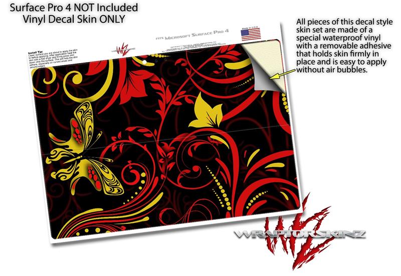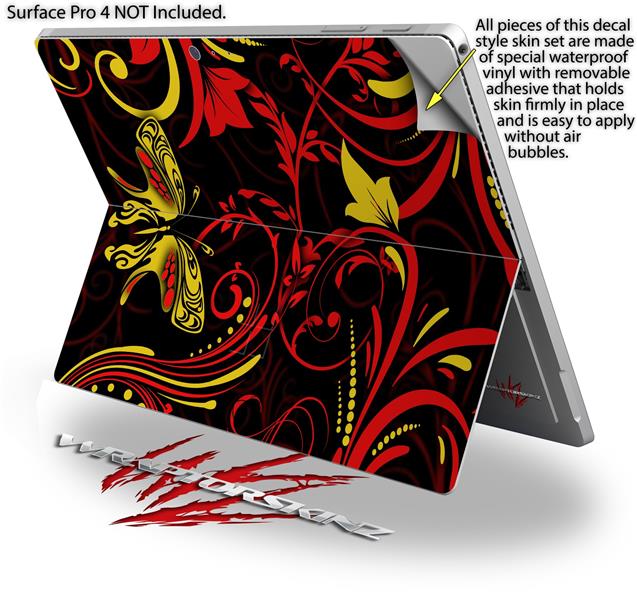 Decal Style Vinyl Skin for Microsoft Surface Pro 4 - Twisted Garden Red and Yellow - (SURFACE NOT INCLUDED)