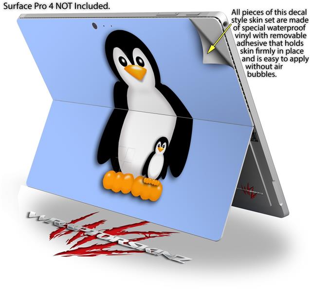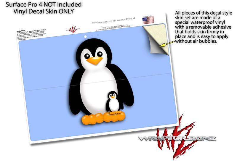 Decal Style Vinyl Skin for Microsoft Surface Pro 4 - Penguins on Blue - (SURFACE NOT INCLUDED)