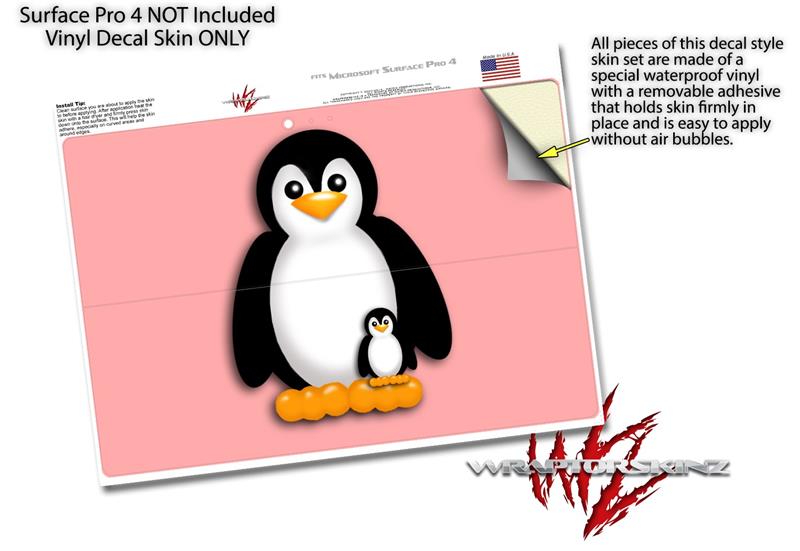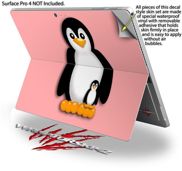 Decal Style Vinyl Skin for Microsoft Surface Pro 4 - Penguins on Pink - (SURFACE NOT INCLUDED)