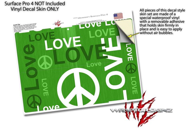 Decal Style Vinyl Skin for Microsoft Surface Pro 4 - Love and Peace Green - (SURFACE NOT INCLUDED)