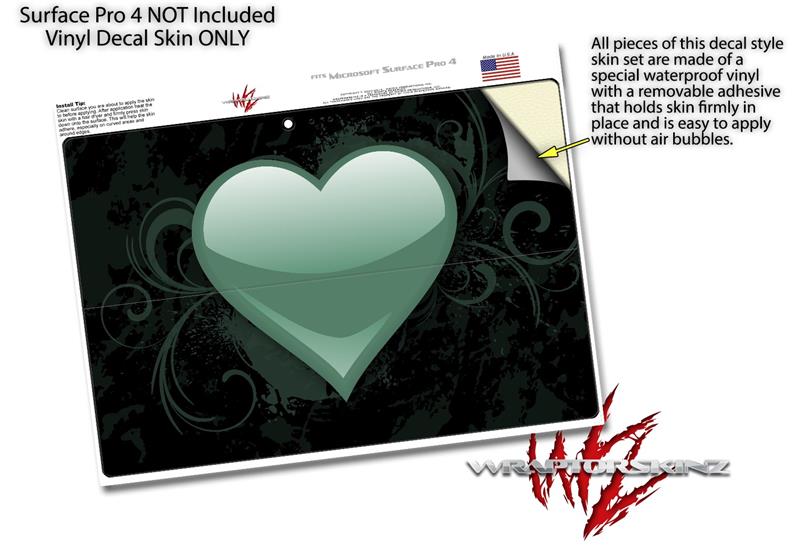 Decal Style Vinyl Skin for Microsoft Surface Pro 4 - Glass Heart Grunge Seafoam Green - (SURFACE NOT INCLUDED)