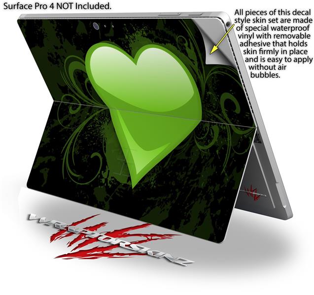 Decal Style Vinyl Skin for Microsoft Surface Pro 4 - Glass Heart Grunge Green - (SURFACE NOT INCLUDED)
