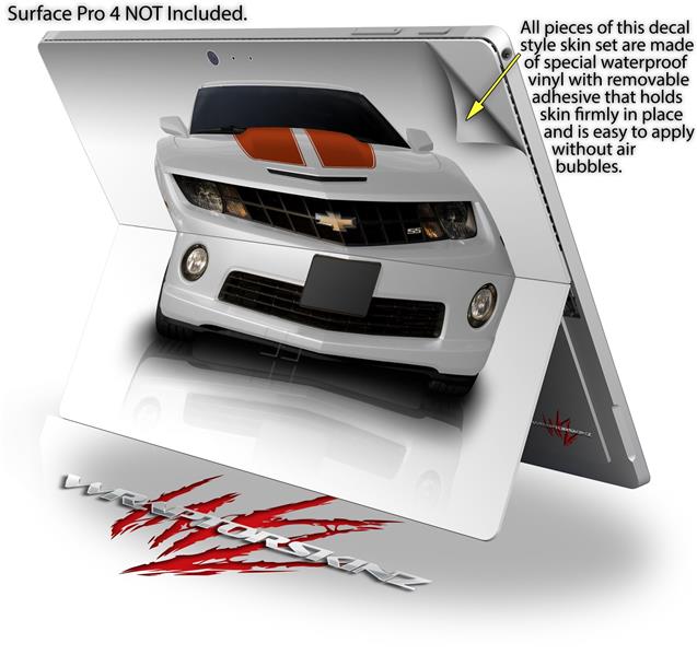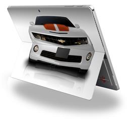 Decal Style Vinyl Skin for Microsoft Surface Pro 4 - 2010 Chevy Camaro White - Orange Stripes - (SURFACE NOT INCLUDED)