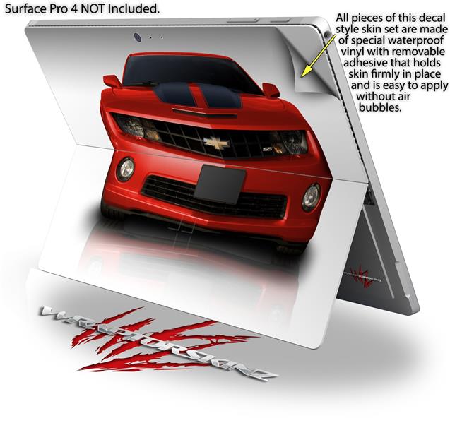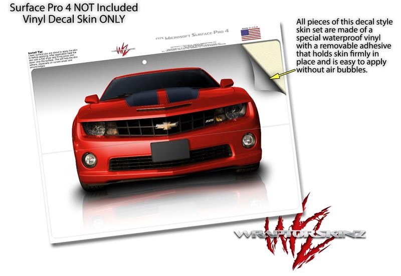 Decal Style Vinyl Skin for Microsoft Surface Pro 4 - 2010 Chevy Camaro Victory Red - Black Stripes - (SURFACE NOT INCLUDED)