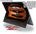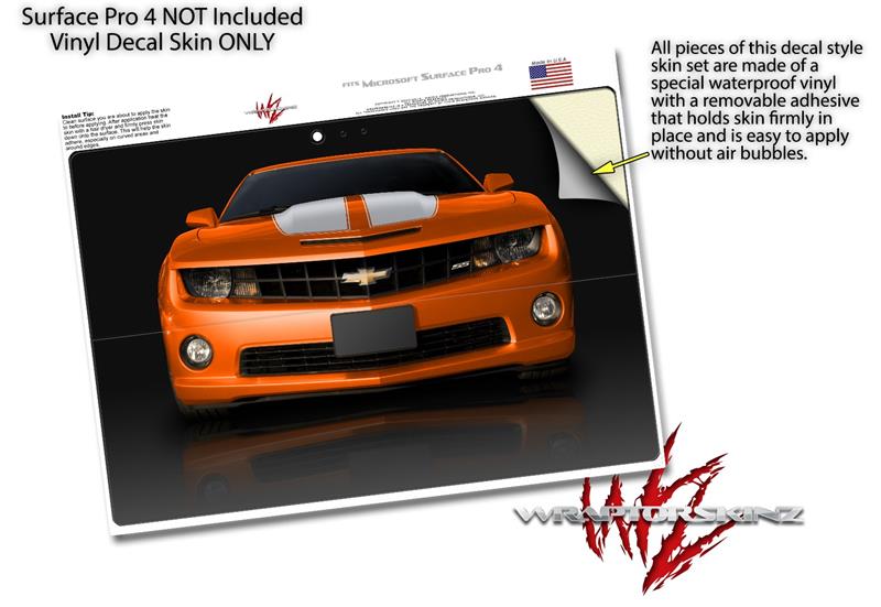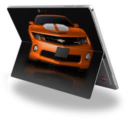 Decal Style Vinyl Skin for Microsoft Surface Pro 4 - 2010 Chevy Camaro Orange - White Stripes on Black - (SURFACE NOT INCLUDED)