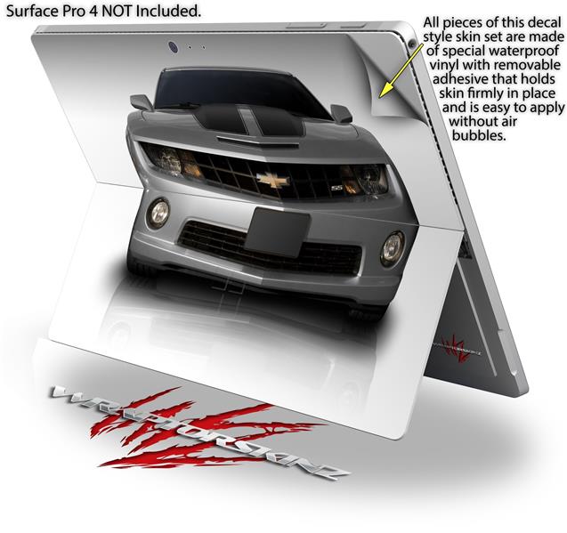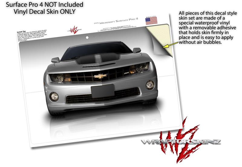 Decal Style Vinyl Skin for Microsoft Surface Pro 4 - 2010 Chevy Camaro Silver - Black Stripes - (SURFACE NOT INCLUDED)