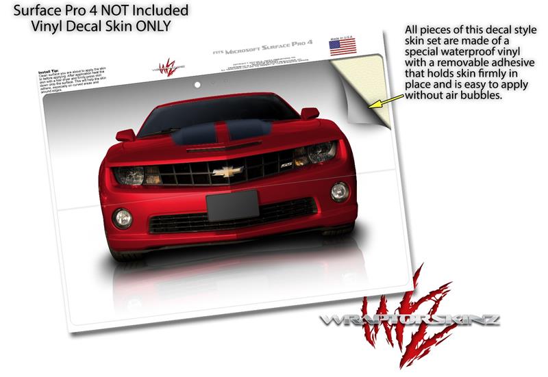 Decal Style Vinyl Skin for Microsoft Surface Pro 4 - 2010 Chevy Camaro Jeweled Red - Black Stripes - (SURFACE NOT INCLUDED)