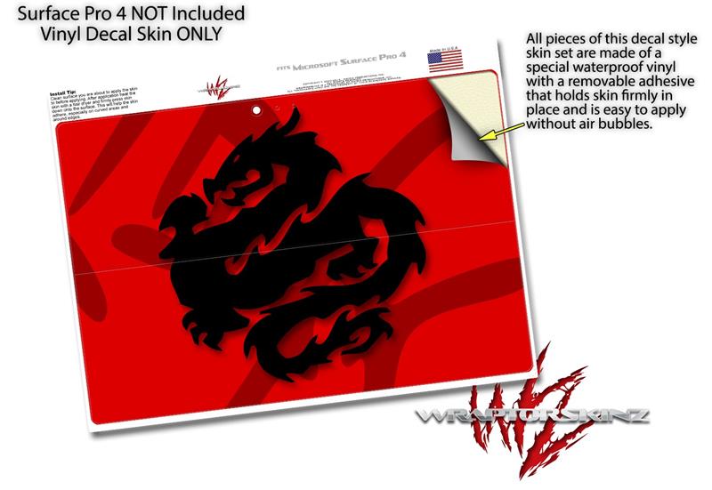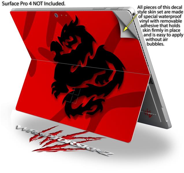 Decal Style Vinyl Skin for Microsoft Surface Pro 4 - Oriental Dragon Black on Red - (SURFACE NOT INCLUDED)