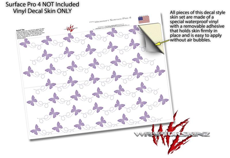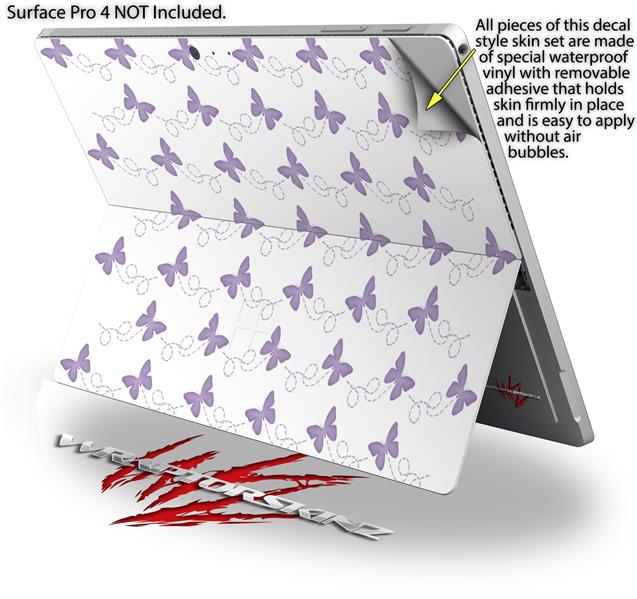 Decal Style Vinyl Skin for Microsoft Surface Pro 4 - Pastel Butterflies Purple on White - (SURFACE NOT INCLUDED)