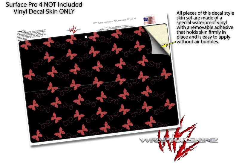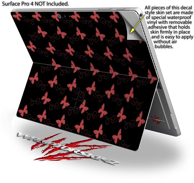 Decal Style Vinyl Skin for Microsoft Surface Pro 4 - Pastel Butterflies Red on Black - (SURFACE NOT INCLUDED)