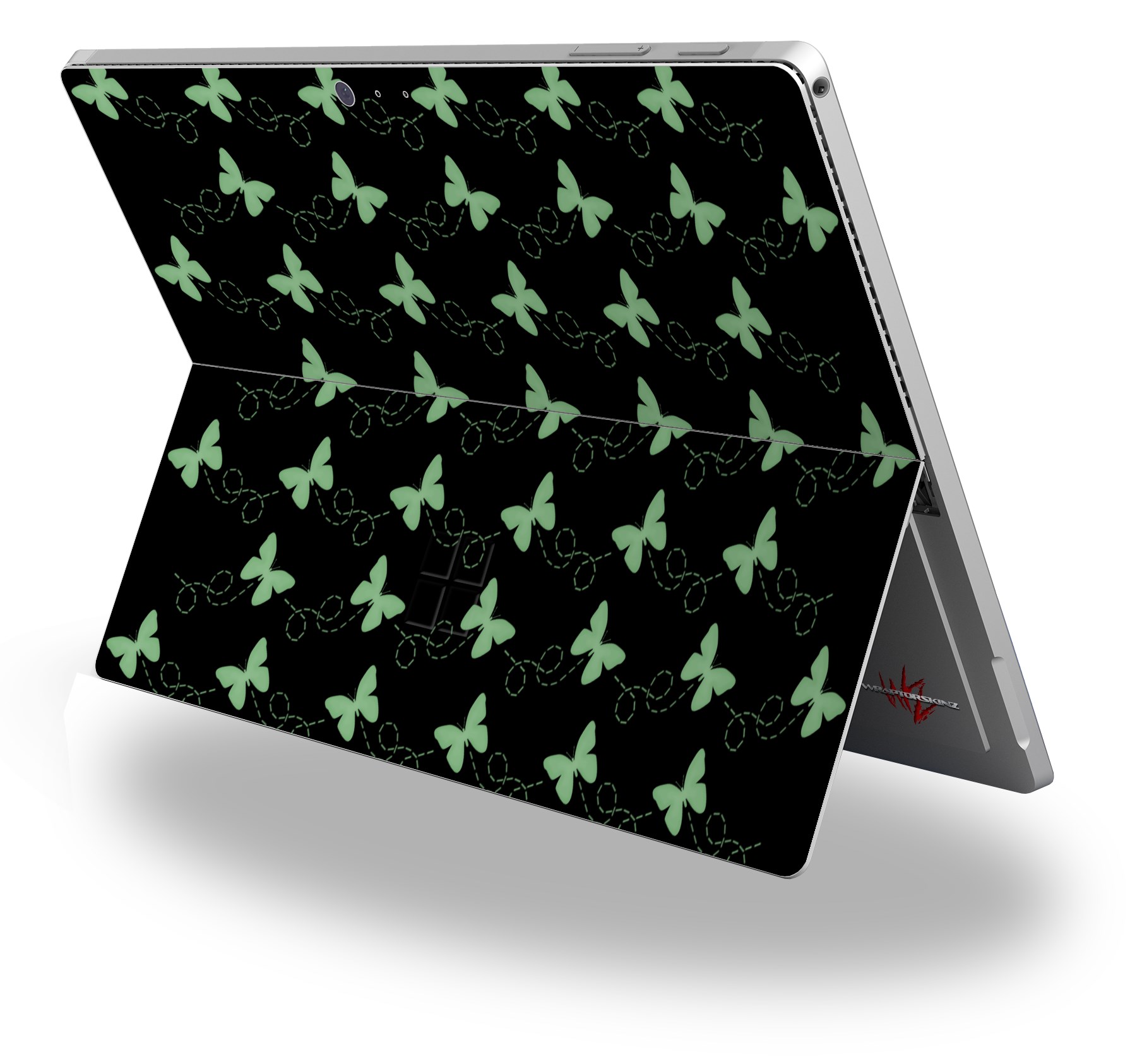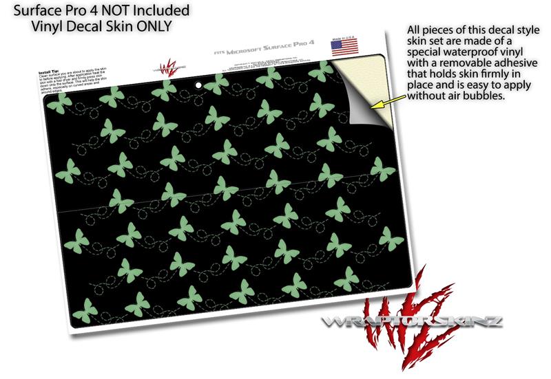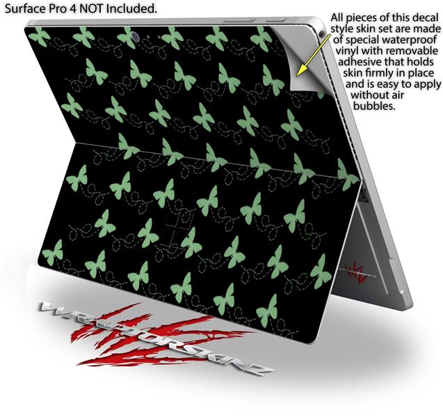 Decal Style Vinyl Skin for Microsoft Surface Pro 4 - Pastel Butterflies Green on Black - (SURFACE NOT INCLUDED)