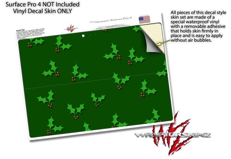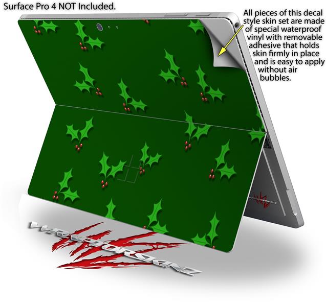 Decal Style Vinyl Skin for Microsoft Surface Pro 4 - Christmas Holly Leaves on Green - (SURFACE NOT INCLUDED)