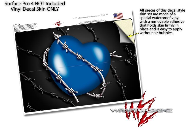 Decal Style Vinyl Skin for Microsoft Surface Pro 4 - Barbwire Heart Blue - (SURFACE NOT INCLUDED)