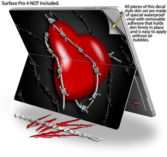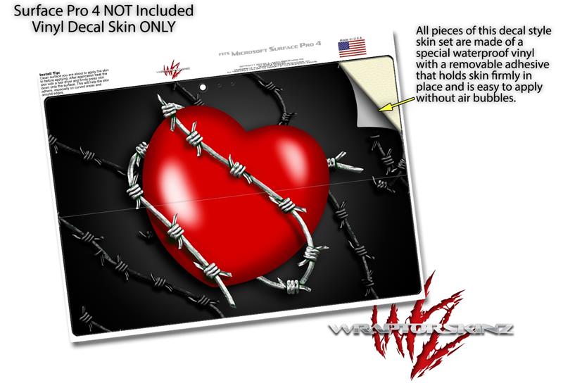 Decal Style Vinyl Skin for Microsoft Surface Pro 4 - Barbwire Heart Red - (SURFACE NOT INCLUDED)