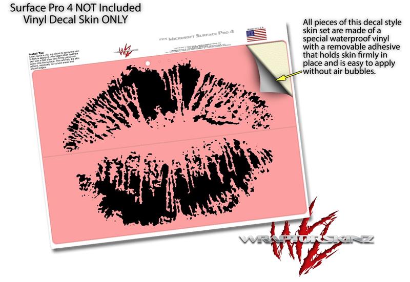 Decal Style Vinyl Skin for Microsoft Surface Pro 4 - Big Kiss Lips Black on Pink - (SURFACE NOT INCLUDED)