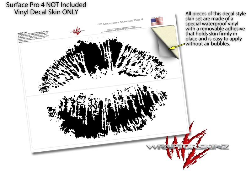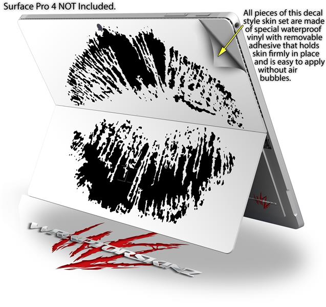 Decal Style Vinyl Skin for Microsoft Surface Pro 4 - Big Kiss Lips Black on White - (SURFACE NOT INCLUDED)