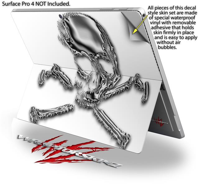 Decal Style Vinyl Skin for Microsoft Surface Pro 4 - Chrome Skull on White - (SURFACE NOT INCLUDED)