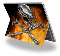 Decal Style Vinyl Skin for Microsoft Surface Pro 4 - Chrome Skull on Fire - (SURFACE NOT INCLUDED)