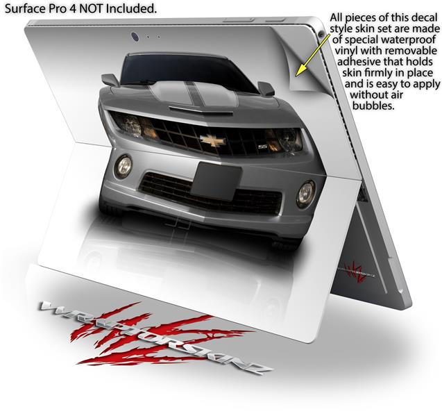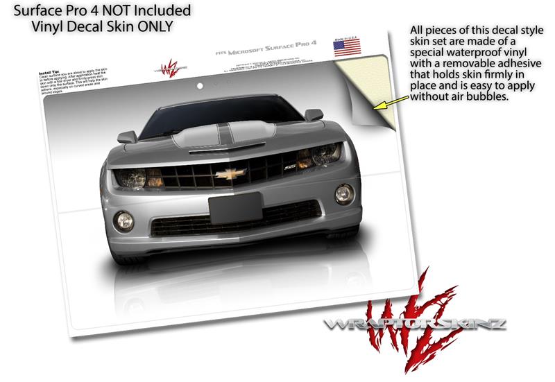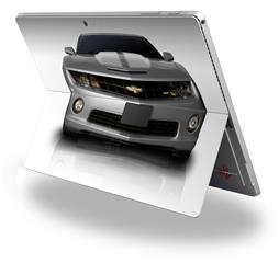 Decal Style Vinyl Skin for Microsoft Surface Pro 4 - 2010 Chevy Camaro Silver - White Stripes - (SURFACE NOT INCLUDED)