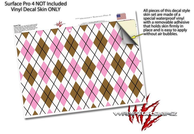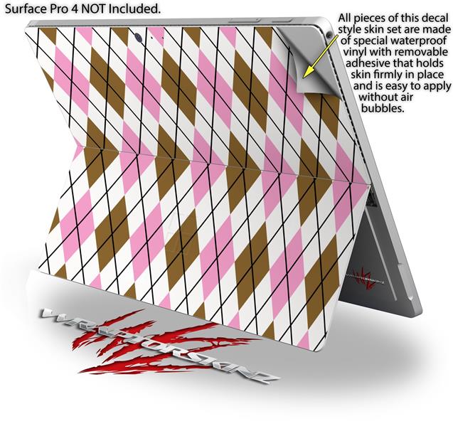 Decal Style Vinyl Skin for Microsoft Surface Pro 4 - Argyle Pink and Brown - (SURFACE NOT INCLUDED)
