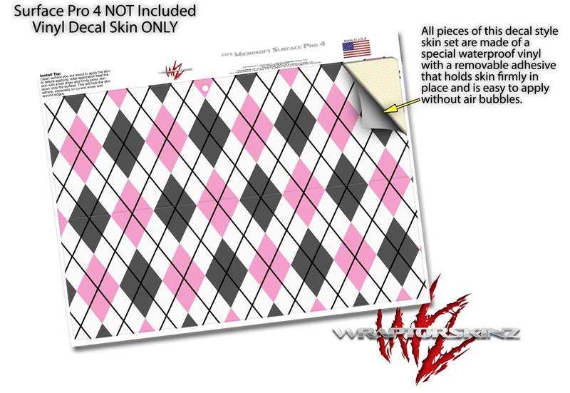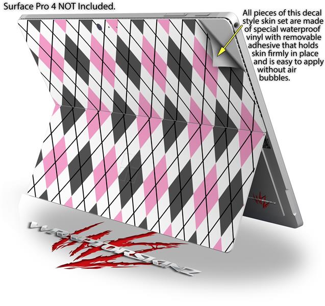 Decal Style Vinyl Skin for Microsoft Surface Pro 4 - Argyle Pink and Gray - (SURFACE NOT INCLUDED)
