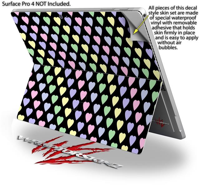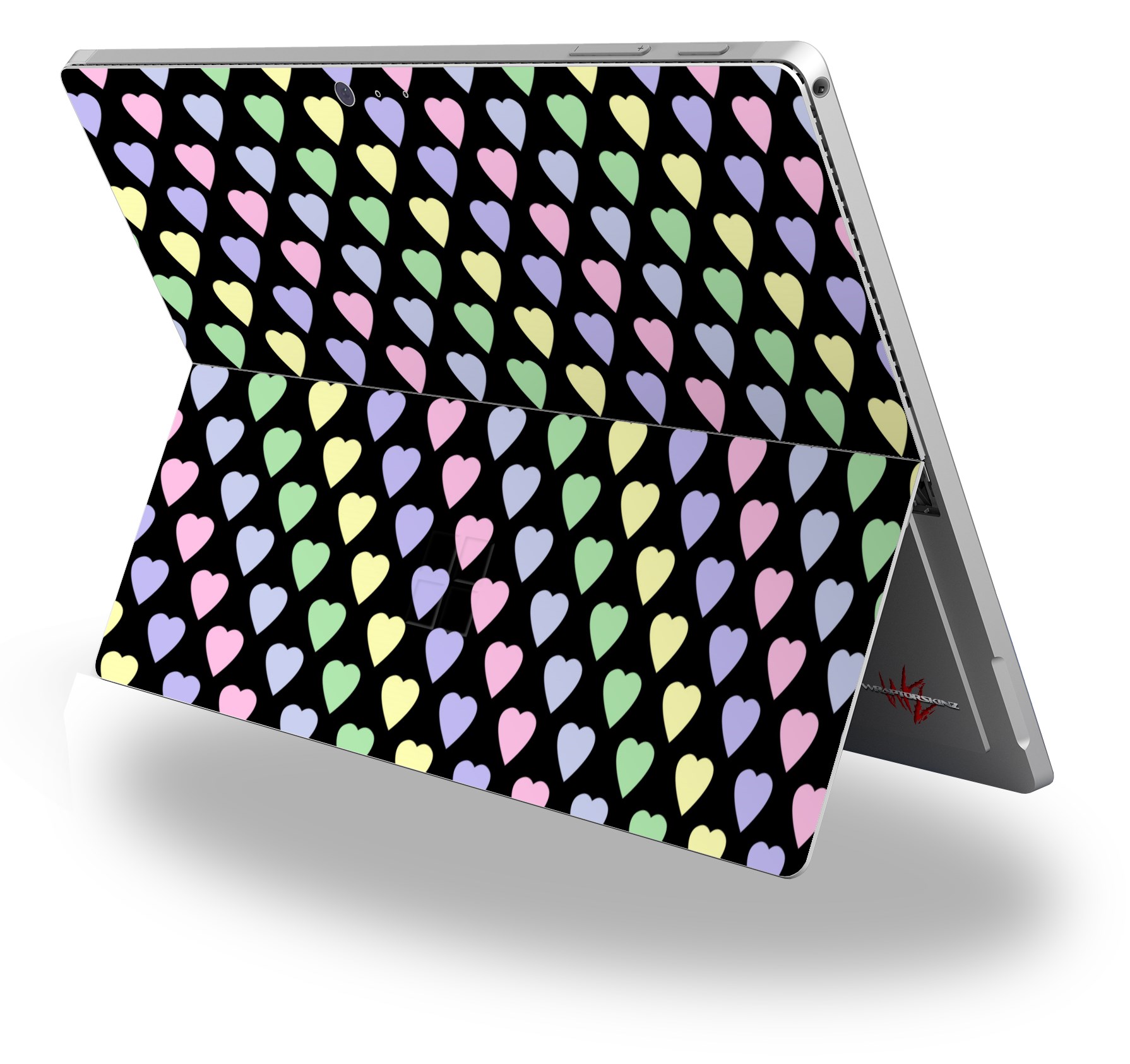 Decal Style Vinyl Skin for Microsoft Surface Pro 4 - Pastel Hearts on Black - (SURFACE NOT INCLUDED)