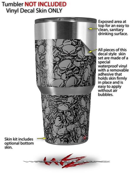 WraptorSkinz Skin Wrap compatible with RTIC 30oz ORIGINAL 2017 AND OLDER Tumblers Scattered Skulls Gray (TUMBLER NOT INCLUDED)