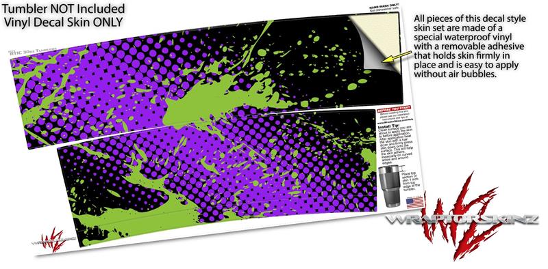 WraptorSkinz Skin Wrap compatible with RTIC 30oz ORIGINAL 2017 AND OLDER Tumblers Halftone Splatter Green Purple (TUMBLER NOT INCLUDED)