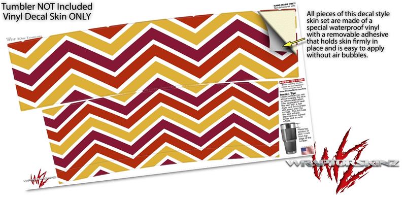 WraptorSkinz Skin Wrap compatible with RTIC 30oz ORIGINAL 2017 AND OLDER Tumblers Zig Zag Yellow Burgundy Orange (TUMBLER NOT INCLUDED)