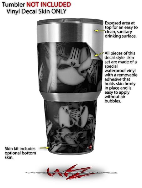 WraptorSkinz Skin Wrap compatible with RTIC 30oz ORIGINAL 2017 AND OLDER Tumblers Skulls Confetti White (TUMBLER NOT INCLUDED)