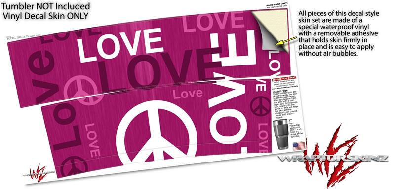 WraptorSkinz Skin Wrap compatible with RTIC 30oz ORIGINAL 2017 AND OLDER Tumblers Love and Peace Hot Pink (TUMBLER NOT INCLUDED)