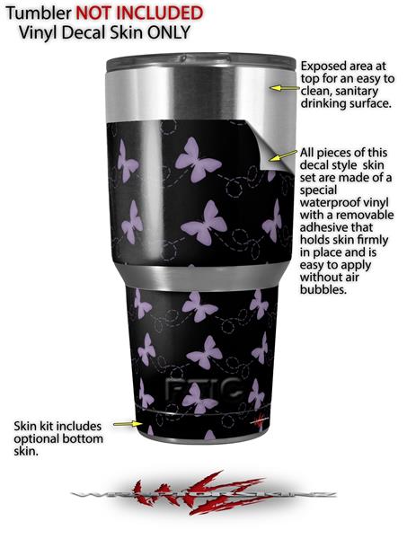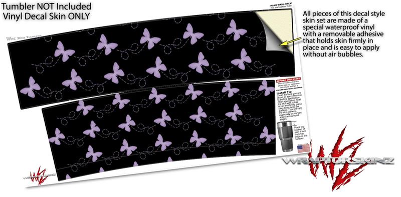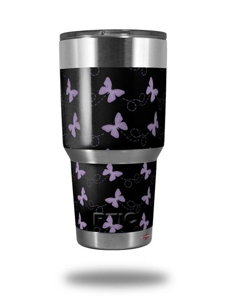 WraptorSkinz Skin Wrap compatible with RTIC 30oz ORIGINAL 2017 AND OLDER Tumblers Pastel Butterflies Purple on Black (TUMBLER NOT INCLUDED)